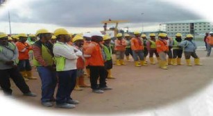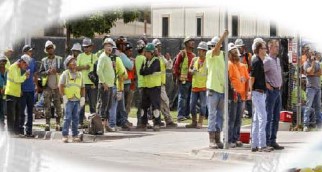 Installation of equipment & Engineering workers at Site Tool Box meeting.
